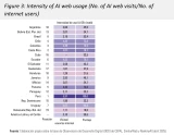 Once identified, the websites were grouped into three categories: generative AI solutions; AI models and APIs; and open-source or developer platforms. For analytical purposes, the last two categories were combined as “advanced AI use.” The AI web traffic indicator is composed of two sub-indicators — the intensity of AI web use and the intensity of advanced AI web use — and together they account for 25% of the overall adoption dimension in the ILIA framework.