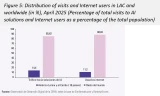 The report also provides a regional overview that puts these results into context and compares Latin America with global trends. It shows that the region accounts for 14% of global AI web visits while representing only 11% of global internet users (figure 5). This means the region is using AI solutions at a higher rate than its global digital weight would suggest.