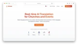 Glossa provides real-time voice translation for churches and events, designed to make sermons and talks instantly understandable across languages. It also mentions support for biblical context and works across devices.